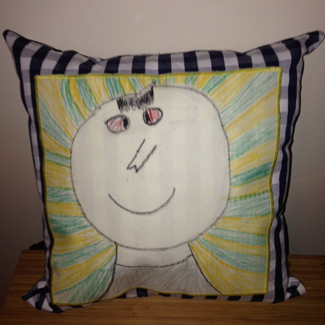 Your loving 2nd grader poured his/her heart into a home-made adorable throw pillow which captures the essence of your child’s soul. Surrounded by the fabric design of his/her choice, your child's candid headshot photo is captured on the front of the pillow with a self-portrait pastel drawing on the back. This item will quickly become a family keepsake handed down for generations or an eBay auction item when he/she becomes a regular on TMZ. The pillows are adorable. The perfect item to accent your sofa or bedding.